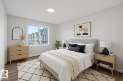 Stunning & well maintained 2 BDRM TOWNHOUSE W/ 2 ENSUITES, tandem 2 car garage, NO CARPET & fenced front yard in the desirable Glenridding Heights! This home offers style & functionality w/ 1150 sf of thoughtfully designed space. Ideal for a 1st time home buyer or investor! Open-concept layout and 9ft ceilings on the main flr seamlessly connect the living room, dining nook, kitchen, and patio. Great for relaxing & entertaining! Kitchen features a large island w/ eating bar, quartz countertops, S/S appliances, sleek white cabinets, subway tile backplash & tons of storage. Upstairs, you'll find two generously sized bedrooms, both with their own full 4-pc bath ensuites and walk in closets - perfect for two roommates or a couple. Additional features include HRV & tankless hot water for lower utility bill. Conveniently located close to schools, transit, Currents of Windermere, Jagare Ridge Golf, & Movati gym. Quick access to major routes incl Henday & Rabbit Hill Rd for effortless city wide commuting.