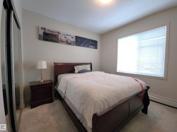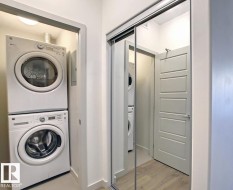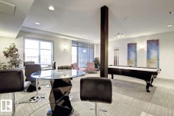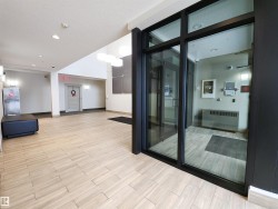 Top-floor 2-bedroom, 2-bathroom condo offering two TITLED underground parking stalls, extra storage, and a large balcony with gas BBQ hookup. This premium floor plan features a spacious open-concept layout with upgraded wide-plank flooring throughout, a modern kitchen with a large island and eating bar, plus generous cabinet and counter space that flows seamlessly into the dining and living areas—ideal for entertaining. The king-sized primary bedroom includes a walk-through closet with organizers and a 3-piece ensuite, while the spacious second bedroom is conveniently located next to the 4-piece main bathroom. Enjoy added privacy and quiet top-floor living, along with building amenities such as a fitness room, social room with pool table and wet bar, and a guest suite. Ideally located steps from parks, trails, and man-made lakes, with quick access to Anthony Henday, Whitemud, shopping, and restaurants.