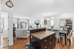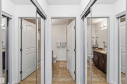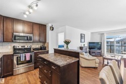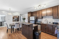 Stylish TOP-FLOOR unit in South Terwillegar offering ultimate privacy: no neighbours above and a shared wall with a rarely used stairwell for exceptionally quiet living. The open-concept interior features a large kitchen with SS appliances, eat-at island, and dining area. Both bedrooms are generously sized, including a primary retreat with a walk-through closet and 3 piece ensuite. IN-SUITE LANDRY and a bright, functional layout make this move-in-ready home both modern and affordable. Relax, grill, and enjoy the sunsets. The West-facing balcony features a NATURAL GAS HOOKUP for BBQ'ing (or fire table?) for ultimate convenience. Rare added value includes heated UNDERGOUND TANDEM PARKING stalls for 2 vehicles — perfect for Edmonton winters. Residents also have access to a fitness room and social room, all while being steps from Terwillegar’s beautiful walking trails. Conveniently located near schools, shopping, golf and transit, this quiet top-floor condo is a must-see.