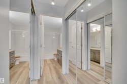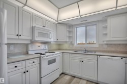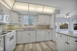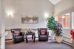 TOP FLOOR. CORNER SUITE. MOVE IN READY. This TWO BED/TWO FULL BATH 1138 SQUARE FOOT SUITE IN WEST EDMONTON is bathed in natural light. SERENE, QUIET AND PRIVATE. Southeast facing suite at the back of the building boasts a large balcony, BBQ gas line & AIR CONDITIONING! Freshly painted. Features WALK-IN SHOWER, & NEW LUXURY WATERPROOF LAMINATE FLOORING. Spacious, generous, open concept design includes kitchen, dining & living room. Fireplace boasts updated tile surround and you will love the oversized coat closet. Wolf Willow Manor offers a perfect blend of safety & community. This 55+ building is extremely well maintained and offers amenities that include: a CAR WASH, GAMES ROOM, SOCIAL ROOM, GYM & LIBRARY. PLUS small dogs are allowed w/ board approval. UNDERGROUND HEATED PARKING STALL near the exit complete w/ a STORAGE CAGE. A short drive to the Whitemud Freeway, West Edmonton Mall and the RIVER VALLEY. Ready for your personal touch. Turn the key and walk into your new adventure!