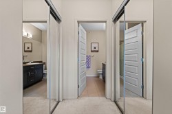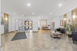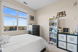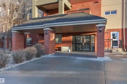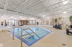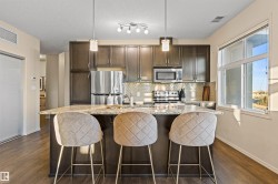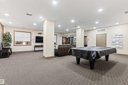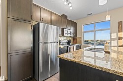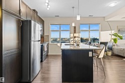 WELL KEPT. TOP FLOOR. CORNER UNIT. PET FRIENDLY. This 1,058 sq. Ft 2 BED + DEN / 2 FULL BATH unit features 9 FT CEILINGS, TWO TITLED UNDERGROUND PARKING STALLS W/ STORAGE CAGES, and CENTRAL AIR CONDITIONING. The kitchen showcases GRANITE COUNTERTOPS, UPGRADED CABINETRY, and DURABLE WIDE-PLANK LAMINATE FLOORING throughout. Enjoy EXTRA WINDOWS and exceptional natural light all day long thanks to the CORNER UNIT LOCATION and EAST & SOUTH-FACING EXPOSURE. The OPEN concept layout features a LARGE KITCHEN ISLAND overlooking the dining and living spaces. The primary bedroom offers a DOUBLE SIDED walk through closet leading to a FULL ENSUITE w/ DOUBLE SINKS, STAND-UP SHOWER, and LINEN STORAGE. Located in URBAN VILLAGE, the building offers some of the city’s best amenities, including an INDOOR SWIMMING POOL, HOT TUB, SAUNA, FULL-SIZED GYM, TWO LARGE PARTY ROOMS, GUEST SUITE, and more. FANTASTIC LOCATION, just 10 MINUTES TO DOWNTOWN, SHERWOOD PARK & ANTHONY HENDAY. Welcome home!