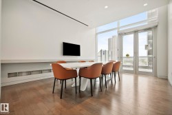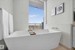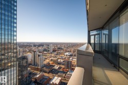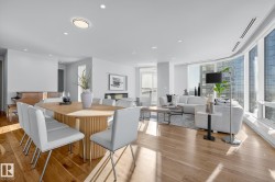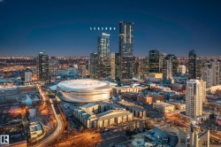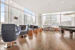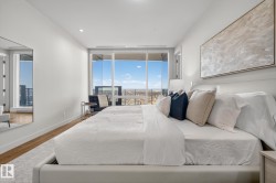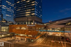 Legends Private Residences offers a rare chance to own a spectacular 2000+ square foot high floor corner suite with stunning Southwest views and unmatched luxury living. Soak in jaw dropping sunsets and river valley scenery from inside your home or either of your two private balconies. The layout is designed for ultimate comfort with a grand primary retreat featuring a massive walk in closet and spa calibre ensuite with walk in shower, freestanding tub, double vanities and heated floors. Premium finishes shine throughout including a sleek high gloss kitchen with integrated appliances, upgraded gas range and walk in pantry, rich walnut flooring, a bright den and a full laundry room with side by side machines. Enjoy a true connected lifestyle with pedway access to Rogers Place, the financial core, shopping, dining and entertainment. Indulge in JW Marriott amenities including a world class spa with indoor pool and steam rooms, ARCHETYPE fitness, 24 hour concierge and security, valet and exceptional dining.