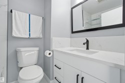 Discover refined living in this beautifully updated Mid-Century Modern bungalow, thoughtfully redesigned to blend classic character with modern comfort. The home features a functional open-concept layout with luxury vinyl plank flooring, offering 3 spacious bedrooms on the main floor and 2 bedrooms in the basement . The contemporary kitchen boasts a stylish two-tone design with quartz countertops, undermount sinks, new stainless steel appliances, and modern LED lighting. BASEMENT FULLY FINISHED includes a SEPERATE ENTRANCE and a SECOND KITCHEN, making it ideal for extended family living. Enjoy outdoor gatherings in the large backyard and the convenience of a double detached garage, making this property an excellent blend of modern upgrades, functional living space, and investment potential.