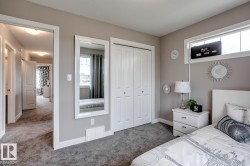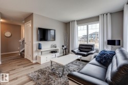 Welcome to Skylark 87 located just minutes south of St. Albert. Trumpeter on Big Lake is taking flight with over 300 acres of rolling hills, mature woodlands and natural wetlands. Trumpeter is home to a wide variety of wildlife, over 220 bird species, and now you can make this exceptional location your home too. This exceptional 2 storey townhome features quality finishing throughout including quartz counter tops, vinyl plank flooring, ceramic tile backsplash, ceramic tile floors, stainless appliances, and so much more. The open concept main floor features the kitchen, the dining room, and the living room all open to each other. The upper floor features a generous master w/walk in closet and 4 piece ensuite, 2 additional bedrooms, a second upper floor 4 piece bath, THE BONUS ROOM, & the laundry room. This unit features a DOUBLE ATTACHED GARAGE and a unfinished basement. Enjoy summer days on your spacious rear deck. At this price, what are you waiting for? Come take a peak.