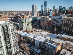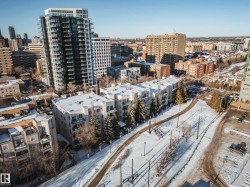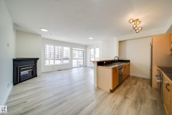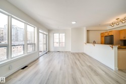 Enjoy the best of downtown living w/space & style to match,in this RENOVATED 2 bed 2 bath PENTHOUSE CORNER unit. Tucked into a sought after building just steps off Jasper Ave, w/easy access to Rogers Place, MacEwan, River Valley, LRT, & everyday amenities. Thoughtfully updated w/new LUXURY VINYL PLANK flooring, fresh paint, new baseboards, trim, window casings, light fixtures, hardware, & brand new appliances, it's truly move in ready. A bright & welcoming open concept living space is anchored by a corner GAS fireplace and surrounded by windows inviting in natural light. The kitchen offers generous counter space & a breakfast bar, making it perfect for entertaining or relaxed evenings at home. Take in beautiful sunrises off your east facing patio w/natural gas hookup. The primary suite hosts a LARGE W.I.C. & private 4pc ensuite, while the 2nd bedrm sits next to a full 3pc bath. In-suite laundry, AC, & 2 titled HEATED, UNDERGROUND tandem stalls complete the package. Turn key and ready for you to call home!
