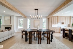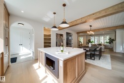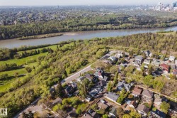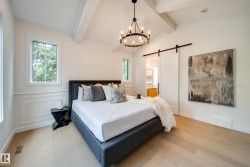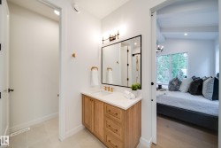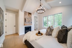 LOCATION, LUXURY & LIFESTYLE! Welcome to this BRAND NEW, 3,700+ sqft of total living 2-storey infill home built by CHBA Award-Winning Justin Gray Homes & designed by CM Interior Designs! Sitting on a LARGE corner lot in prestigious community Highlands! Featuring 9’ ceilings on all levels w/ 8’ doors, endless windows, wrap-around front porch & rear deck. The open-concept main offers a grand living room w/ plaster gas fireplace, dining w/ wood beams & shiplap, HUGE main floor office, chef’s kitchen complete w/ Fisher & Paykel panel fridge, gas stove, apron sink, gold pluming, custom cabinetry, plus mudroom & 2-pc bath. Upstairs boasts 4 bedrooms & 3 baths: massive primary retreat w/ vaulted ceilings, gas fireplace, boulevard views, custom WIC & spa-inspired ensuite. 2nd Bedrm (mini-master) w/ ensuite & WIC, and Jack & Jill bath for bedrooms 3 & 4. Fully finished basement offers 2 bedrooms, bath & open theatre room. Steps to Highlands Golf, river valley, Concordia, Borden Park, schools & mins to Downtown!