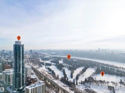 Luxury+style welcomes you to this stunning two bedroom condo set within the city’s most premier+architecturally sleek developments,The Pearl Tower.The modern open concept+design boasts new European oak hardwood floors;premium finishes;high ceilings;+expansive windows offering a light+airy living space w/panoramic city views.The upscale kitchen has contemporary cabinets,high end appliances,upgraded tile+quartz counters.The sophisticated living room offers a spacious retreat w/fireplace+access to the balcony.The primary bedroom is an oasis w/walk through closet(w/custom organizer),ensuite (w/roughed in steam shower)+access to the second balcony.Completing this condo is a second bedroom,4pc bath+laundry.Other Upgrades:A/C,TWO Underground Stalls…the list is endless!Indulge in the buildings amenities including 24/7 concierge,workout facility+social room.Located in one of the most vibrant areas+surrounded by AMAZING restaurants,entertainment,shops+the River Valley.Experience URBAN luxury at its finest!