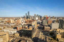 Located in Meridian Plaza, this 2 bed 2 bath condo is MOVE IN READY! The beautiful kitchen showcases SOLID WOOD Delton cabinetry topped with GRANITE countertops, a large island, and brand NEW electric stove (2025), dishwasher (2025), window coverings (2025) and fresh paint! The bright open living room features engineered hardwood floors, electric fireplace, & unobstructed downtown views! Enjoy summer evenings on the large patio equipped with a gas BBQ hookup. The primary suite offers a spacious walk-in-closet with built-ins & a luxurious 5 pc ensuite! The 2nd bedroom is generously sized with more city views & a walk-in-closet. Additional highlights include A/C, title underground parking, & in-suite laundry. Meridian Plaza offers exceptional amenities - fitness centre, owners lounge, guest suite, impressive atrium, and event space. Perfectly located within walking distance to everything downtown--restaurants, shopping & public transportation. The perfect property that blends comfort, style & convenience!