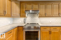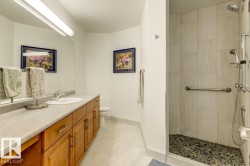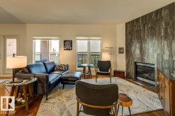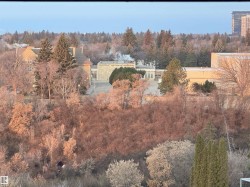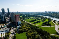 STUNNING RIVER VALLEY VIEW in this Professionally Renovated 2 bed - 2 bath property in Exclusive “Properties on High Street” Upon entry, you’re graced with 9-foot ceilings & an instant River Valley View that spans your entire living space! The gorgeous kitchen boasts extensive cabinets by Kitchen Craft, walk-in pantry, generous counter space & breakfast bar. No expense was spared in the renovations including both luxurious spa like bathrooms, Ceilings completely redone throughout, LED & pot lighting installed, glass tile backsplash, new countertops, under cupboard lighting, tiled fireplace feature wall, complete furnace & AC HVAC system replacement. Just steps to all the shops & restaurants 124th & High Street have to offer with Rogers Place Arena, Winspear Concert Hall & Citadel Theatre at your fingertips. Additionally, there is a gas BBQ outlet on your patio, plenty of visitor parking & amenities including an exercise room & spacious outdoor main floor patio area overlooking the River Valley