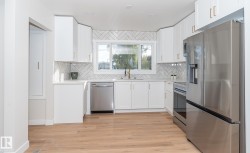 Turnkey, beautifully reborn bungalow in sought-after Terrace Heights. Sunlight fills the open-concept main floor through large windows, showcasing all-new flooring and a stunning chef’s-dream, entertainer’s-delight kitchen with quartz counters, custom cabinetry and stainless appliances. The home offers 4 spacious bedrooms and 3 fully remodeled bathrooms, including a spa-style ensuite and a newly designed walk-in closet for the primary suite. The fully finished basement nearly doubles the living space and is ideal for teens, long-term guests, a live-in nanny, home gym, media room or private office. Located on a quiet, tree-lined street minutes from downtown, schools, parks and shopping. Beyond the beautiful finishes, the home also delivers key structural upgrades: full plumbing conversion to PVC, re-engineered ducting for consistent comfort, and professional exterior regrading with refreshed landscaping. Modern style, peace of mind and true turnkey living in one of Edmonton’s most established communities.