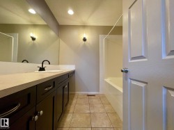 THIS IS TRULY ONE OF THE BEST UNITS IN THE STONEBRIDGE COMMUNITY OF ELLERSLIE! There is so much to love about this beautifully maintained two-story townhome. As an END UNIT, it offers extra privacy along with an OVERSIZED DRIVEWAY that provides additional parking. Inside, you'll appreciate the BATHROOMS GALORE! A convenient half bath located in the FINISHED BASEMENT, another half bath on the main floor plus two full baths upstairs (many comparable units offer only one). This layout is ideal for multiple people needing to get ready in the morning. The REAR PRIVACY FENCE (an extra addition) & extended back patio create the perfect space for outdoor relaxation. Recent updates include FRESH PAINT on the main & upper levels, PROFESSIONAL CLEANING throughout, & BRAND NEW BASEMENT CARPET installed in November 2025. For those cold Alberta winters, you'll truly value the ATTACHED SINGLE CAR GARAGE. This ONE-OWNER HOME showcases genuine PRIDE OF OWNERSHIP from the moment you walk in! QUICK POSSESSION is available.