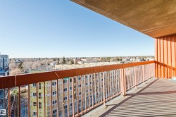 Welcome to Hollyburn Towers, an eight-storey concrete high-rise. This top-floor one-bedroom, one-bathroom unit offers an open floor plan and a large east-facing balcony with city views. The kitchen includes a fridge, stove, and built-in dishwasher. The building features two elevators, outdoor visitor parking, an on-site property manager, and active strata management. Rental of one strata condo, parking, and strata laundry provides continuous income for owners. Located within walking distance to the light rail and bus hub, and with easy access to schools, shopping, and major thoroughfares, this unit is well-suited for working professionals or investors seeking strong rental potential. Underground heated parking is available for rent.