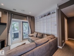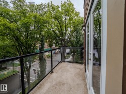 IMMEDIATE POSSESSION. Incredible townhouse with THREE TITLED PARKING STALLS, a titled 13x13 workshop plus two balconies, nestled on a tree lined street, in the heart of Garneau. Less than a 5 minute walk to the U 0f A. This corner unit allows in tons of natural light from the numerous windows & 9' ceilings. The kitchen features a huge eat up island, granite counter tops, stainless steel appliances with gas stove & pantry. The open living/dining area has a stone encased gas fireplace & hardwood flooring. On the second level is a family room with large east facing balcony & built in shelving. Finishing this level is a three piece bathroom with large luxurious tiled shower & granite counter tops. The full size washer & dryer are stacked in this bathroom. On the upper level is the primary bedroom with south facing balcony, four piece en-suite & walk-in closet. The spacious titled workshop is located in the parkade. All three stalls are together. Additional sound insulation. A/C. Condo fees cover heat & water.