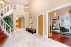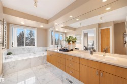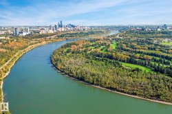 Introducing this one-of-a-kind dream home — sitting on an incredible .4 acre lot on the prestigious Riverside Drive — with panoramic views of the River Valley and Edmonton Skyline. At 97'x189', this is the largest lot currently available in Crestwood, and one of the largest available in Crestwood this decade. Take in the stunning river valley sunrises from the perfectly-oriented family, dining & living rooms. Renovations include a chef's kitchen w. Sub-Zero fridge, Viking gas range, and mahogany & marble floors throughout. Enjoy the convenience of a main floor office/bedroom & full 4pc bathroom. The curved staircase leads to the upper floor, w. 4 bedrooms including a breathtaking primary w. 6pc ensuite & the best river valley views this home offers. The full basement has a separate entrance, in-floor heating & could even fit a 3 bedroom suite. Your ultra-private west-facing backyard and triple attached garage truly makes it feel like acreage living — minutes to downtown. A custom estate unlike any other.