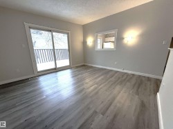 This home offers affordable ownership with a functional layout and convenient location. A welcoming bi-level townhouse in Evansdale offering over 914 sq ft of comfortable, well-designed living space ideal for those looking for their first place to call home. The upper level features a bright living room with luxury vinyl plank flooring and access to the deck, along with an eat in kitchen equipped with white cabinetry, a double sink, built-in dishwasher, fridge, stove, and a chest freezer. The laundry room and extra storage add everyday convenience. The lower level includes two spacious bedrooms with large windows and generous closet space, plus a full four-piece bathroom. Located within walking distance to Northgate Mall, schools, parks, transit, and neighbourhood amenities, this home offers comfort and practicality in a well established community.