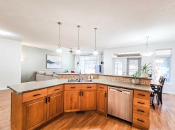 Welcome to Wilshire Estates! This stunning 1,845 sq ft bungalow sits on a beautiful 0.37-acre lot surrounded by mature trees and backing onto a peaceful greenspace — offering privacy and nature right at your doorstep.Inside, you’ll find 5 bedrooms, 3 bathrooms, and central air conditioning for year-round comfort. The open-concept living area is bright and inviting, with a gorgeous view of the backyard. The spacious kitchen features an oversized island with sink and dishwasher, walk-in pantry, plenty of cabinetry, under-cabinet lighting, and high-end stainless steel appliances. French doors from the dining area open onto a covered composite deck with a gas BBQ hookup — perfect for entertaining.The main level includes 3 bedrooms and 2 full bathrooms, including a lovely primary suite with a 3-piece ensuite and private deck. A dream mudroom/laundry room with sink leads to the oversized heated double garage.Downstairs, you’ll love the finished basement with in-floor heat, high ceilings, a wet bar, a family rec room, 2 additional bedrooms, and a 3-piece bath. It’s an ideal setup for movie nights, a home gym, or hosting guests.The fully fenced backyard features built-in cedar benches and planters, an apple tree, two sheds, a new brick patio, and RV parking. Recent updates include paint (2023), new smart kitchen and laundry appliances (2021), and hot water tank in 2023.Located in a family-friendly neighborhood close to trails, parks, and schools — this home truly has it all!