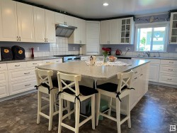 You can't imagine what this home has to offer. Start with the convenient, efficient, dream kitchen. 3 pantries, abundant cupboard space, pull out drawers, dumbwaiter to cold room, wine rack, gas stovetop with electric oven, a (chefs stove), 4.8' x8' island that also seats 4 people and much more. As you enter through the leaded glass doors into the foyer, you will notice how open the living room/dining area is featuring birch floors. The main bedroom is unique in design with and oversized ensuite, including a jetted tub. even main floor laundry. The basement features 2 bedrooms, lg rec room with kitchen, in floor heat plus more. The backyard is a gardeners dream, with raised gardens, green house within floor heat and heated plant bench, plant waterers, etc. Added bonus is the triple car garage, ICF construction, with in floor and overhead heat. This structure is ICF as well.