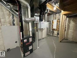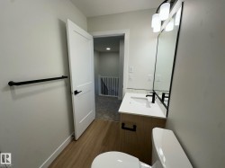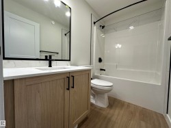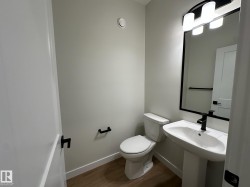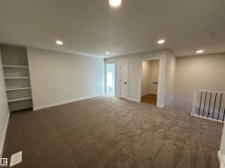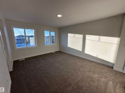 This brand-new Alquinn home offers a thoughtfully designed open-concept main floor that seamlessly connects the living, dining, and kitchen areas—ideal for modern living and entertaining. The gourmet kitchen is finished with a central island and breakfast bar, corner pantry, and quality finishes throughout. Upstairs, comfort and functionality continue with a spacious bonus room, upper-floor laundry, two additional bedrooms, and a full bathroom. The primary suite serves as a private retreat, featuring a walk-in closet and a spa-inspired 5-piece ensuite. Smart design elements include large garage, separate side entrance, and a practical mudroom to support everyday living. Quality craftsmanship and elegant details are evident throughout this well-appointed home. UPGRADES INCLUDE: bonus room, upper-floor laundry, garage w drain, separate entrance, mudroom, upgraded kitchen finishes, and more.