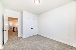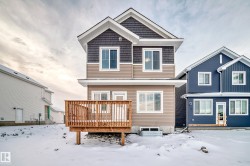 Stunning new 1943 sqft home available in South Pointe! This home features an open to above front entry with coat closet that leads to the mud room and walkthrough pantry into the kitchen with a 7ft long island. Across from the kitchen is your own home office. Main floor is finished off with a perfect living room with electric fireplace feature wall, spacious dining room and a 2-piece bath. Rear entry door leads to a fully finished deck. On the second floor you have your primary bedroom with an indented ceiling, 5-piece bath, and spacious walk-in closet with MDF shelving. 2 additional bedrooms, bonus room, a full bathroom, and walk-in laundry complete the second floor.
