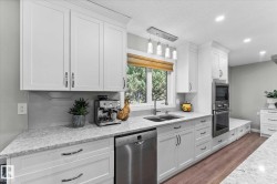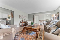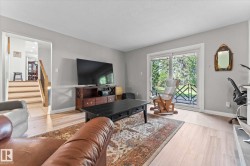 Backing directly onto the RIVER VALLEY, this 2,200+ sq ft 4-level split combines unbeatable space, location, & updates. Curb appeal shines with a completely updated exterior! Inside, new vinyl plank flooring and railings lead to a bright living room, formal dining area, & a completely remodelled kitchen with quartz counters, custom cabinetry, & modern appliances. Upstairs, discover 4 bedrooms including the primary retreat with private balcony overlooking the massive yard, walk-in closet, & 3-pc ensuite. A 4-pc bath completes this level. The lower level offers a cozy family room with stone fireplace surround and built-ins, plus sliding doors to the patio, and a convenient half bath. The finished basement adds 2 more bedrooms, laundry, and a flex/family room. Outside, enjoy the pie shape yard with a huge deck for entertaining, mature trees, fire pit area, & direct access to nature. With an attached double garage, & close to parks, schools, highway access & amenities, this is a rare river valley gem!