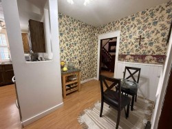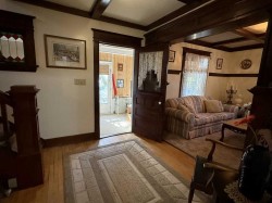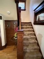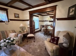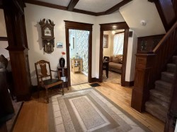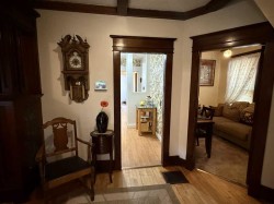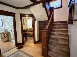Step back in time and fall in love with this beautifully maintained 1945 character home that truly has so much to offer!Begin your tour by entering through the covered, heated front porch — a bright and welcoming space that soaks up the morning sun and offers the perfect spot to relax year-round. From there, step into the formal entryway and take in all the original details that make this home one of a kind: stunning wood trim, stained glass windows, vintage light switches, classic doorknobs, and brass accents throughout.The main floor features a warm and inviting living room, formal dining room, and a spacious eat-in kitchen perfect for family meals. You’ll also find a bonus room currently showcasing a baby grand piano, a cozy sitting room, a convenient 4-piece bathroom with laundry, and a back entry leading to your outdoor spaces.Up the elegant staircase, the second floor offers three generous bedrooms, each with original wood accents and large closets. There’s also a charming 3-piece bathroom with a soaking tub, plus two storage rooms — one currently used as a walk-in closet.The lower level provides additional storage space and houses the furnace and hot water tank. Every inch of this home reflects care, pride, and attention to detail.Outside, enjoy the beautifully landscaped 6,250 sq. ft. lot, complete with a private sitting area and garden, perfect for unwinding or entertaining. A double detached garage offers plenty of space for vehicles, storage, or hobbies.Centrally located and within walking distance to all amenities, this home offers both character and convenience. The seller can accommodate a quick possession, so don’t miss your chance to own this truly special property — book your private showing today!