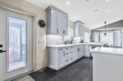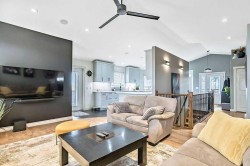 Luxury Living with Exceptional Versatility – A Rare OpportunityWelcome to this beautifully appointed bungalow, where style, comfort, and functionality come together in perfect harmony. Designed to impress, this spacious home offers elegant living on the main level and a thoughtfully designed illegal suite in the walk-out basement — ideal for multigenerational living, guests, or supplementary income. Main Floor Elegance: vaulted ceilings and a stunning gas fireplace anchor the sophisticated family room. Open-concept kitchen and dining area with seamless access to a large, elevated deck complete with a gas BBQ hookup. The chef’s kitchen is a standout feature, complete with professionally painted cabinetry, newer upgraded stainless steel appliances, rich quartz countertops, under-cabinet lighting, a large peninsula with seating, and direct access to the expansive deck with a gas BBQ hookup perfect for indoor/outdoor living. Three generously sized bedrooms offering comfort and privacy, Main floor laundry for added convenience, Integrated surround sound system throughout , Central air conditioning for year-round comfort Outdoor Excellence: Impressive 28' x 26' heated double garage with hot water in-floor heating, 220V power, built-in shelving, and cabinetry. A dream for hobbyists or car enthusiasts. Additional parking beside the garage, perfect for an RV, boat, or multiple vehicles Private yard with direct access from the deck, ideal for entertaining or relaxing in peace. Lumenox custom exterior lighting enhances both curb appeal and security. Walk-Out Lower Level: Large family room that can serve as part of the main home or be closed off for suite privacy. Beautifully finished illegal one-bedroom suite with private access from both inside and outside. Full kitchen, open-concept living and dining area, spacious bedroom, modern bathroom, and private laundry. Enjoy the comfort of hot water in-floor heating throughout the basement. Noteworthy Upgrades: New furnace and HRV unit (2023). New hot water tank (2025). Water softener system. This is more than a home — it's a lifestyle. With premium finishes, extensive upgrades, and a flexible layout tailored for modern families or those seeking a luxurious investment opportunity, this property truly stands out.