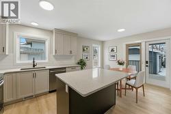 Be prepared to be impressed—this is a rare opportunity to own a home that feels brand new without the price tag of new construction. The property has been substantially renovated down to the studs, with major exterior updates also completed, and offers excellent curb appeal with new siding and a generous front porch. Inside the front door you’ll find vinyl plank flooring, crisp white trim, modern lighting, and fresh contemporary paint colours throughout, along with a functional front entry featuring a built-in bench and coat hooks. The spacious living room, located to the left of the entrance, is filled with natural light from a large front-facing window. The stunning kitchen showcases ceiling-height cream cabinetry, quartz countertops, a subway tile backsplash, an upgraded stainless steel appliance package, and a contrasting island with dark cabinetry. The adjacent dining area overlooks the backyard and deck through patio doors, creating a bright and inviting space. The main level includes a primary bedroom with a four-piece ensuite, a second bedroom, a three-piece main bathroom, and a dedicated laundry area. The fully finished basement offers a large family and games room, two generous bedrooms, a four-piece bathroom, and a large utility and storage room. Being renovated to the studs means the home also benefits from new plumbing, electrical, furnace, hot water tank, electrical panel, shingles, and appliances. Outside, the heated garage features new siding and exterior lighting, with garage shingles replaced in 2014, and the long driveway to it provides additional parking. The fully fenced and landscaped backyard includes a custom-built shed and a large covered deck—perfect for enjoying the outdoors rain or shine. Ideally located, 82 Bruns is within walking distance to trails, parks, playgrounds, schools, shopping, and amenities. (id:27)