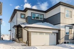 BIG PRICE REDUCTION OF $32,000 FROM ORIGINAL BUILDER PRICE ON THIS LARGE DUPLEX WITH A SEPARATE SIDE ENTRANCE & ATTACHED DOUBLE GARAGE! On a PREMIUM LOT in desired Blackstone, the VIEW 20 by Look Built Inc. provides 3 bedrooms, 2.5 bathrooms and almost 1,600 sf of FUNCTIONAL family living. The main floor features 9' ceilings, a GREAT kitchen with a big center island/eating bar, stone countertops, soft close cabinets, a $6000 appliance allowance, pots/pans drawers, a LARGE eating area, a great room with fireplace and BIG windows that flood the home with light! The second level provides a Bonus Room, space for the washer/dryer, and a Large master bedroom with a walk-in closet and a luxury ensuite with 2 sinks and a walk-in shower. Other highlights include wood & metal railings, window coverings, R/I fridge waterline, and a 10'x10' rear deck with a BBQ gas line. The basement includes 9' foundation walls, rough-ins for a bathroom, wet bar, laundry & a second furnace. Close to Walking trails and a playground!