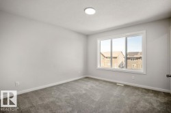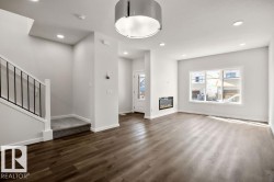 Welcome to The Elise, a thoughtfully designed 1,517 sq ft home offering bright, functional living with future flexibility in mind. Oversized windows flood the open-concept main floor with natural light, creating an inviting space ideal for everyday living and entertaining. The spacious kitchen features a large island and walk-through pantry, seamlessly connecting to the dining and great room, where a 50” electric fireplace adds warmth and style. An oversized mudroom provides exceptional storage and organization. Upstairs, the primary bedroom offers a generous walk-in closet and a private ensuite with dual sinks, while convenient upper-floor laundry enhances daily comfort. The home includes a side entrance and 9’ foundation height, and a three-piece rough-in—ready for future potential development. Smart home features include a smart lock, Ecobee thermostat, and doorbell camera for added security and convenience. Photos are representative.