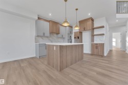 Beautiful Detached Home with Double Car Garage and Tons of Upgrades! Step inside to a bright, open-concept main floor that flows seamlessly throughout. The stunning open-to-above living area features a striking custom feature wall with an elegant electric fireplace. The main floor also includes a convenient bedroom and full bathroom, perfect for guests . The gorgeous built-in kitchen is truly a showstopper, complete with a centre island and a separate spice kitchen for added convenience. The dining nook offers direct access to the backyard, and the mudroom is upgraded with custom MDF shelving. An oak staircase leads you to a spacious bonus room on the upper level. Upstairs, you'll find 4 generous bedrooms and 2 beautifully finished bathrooms. The primary suite is expansive, featuring a large walk-in closet and a luxurious 5-piece custom ensuite. Laundry is conveniently located on the second floor.Additional features include a separate side entrance to the basement.