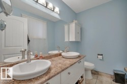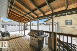Beautiful family home in Southpark! This bungalow features a spacious living room with a cozy gas fireplace, dining area with large windows, and a generously sized kitchen. There are 3 bedrooms on the main floor, including the primary with a walk-in closet and ensuite with 2 sinks. There is also an additional 4-piece bathroom on the main floor. The fully-finished basement has two additional bedrooms, a 3-piece bathroom, a storage area, a laundry, and a huge rec room. The yard has a covered deck, a large storage shed, and an oversized heated garage. New shingles, newer windows on most of the main floor, newer water tank. Fully fenced, landscaped and awaiting its new family! Steps to Notre Dame School, and close to the Leduc Recreation Centre.