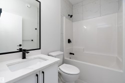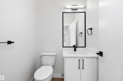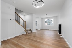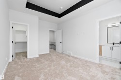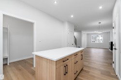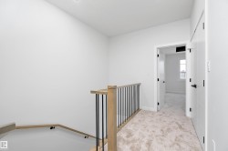 Welcome to this brand new 3-bedroom, 2.5-bathroom home in Leduc’s newest community. The main floor offers luxury vinyl plank flooring, a bright living room with an electric fireplace, and a modern kitchen with quartz countertops, a large island, ample cabinetry, and a spacious pantry. A dining nook and 2 piece bathroom complete this level. Upstairs, you’ll find soaring ceilings and three well-sized bedrooms, including the primary suite with a walk-in closet and an ensuite featuring double sinks and an oversized shower. A 4 piece bathroom and convenient upper-floor laundry complete the second level. Additional features include upgraded lighting, quartz countertops throughout, and a double detached garage. This home is close to schools, walking paths, shopping, and other nearby amenities. Some photos may be virtually staged.