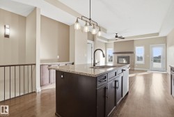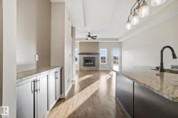 Welcome to executive living in Leduc. This Lake view, walk-out bungalow will impress any discriminating buyer. Open floor plan design, formal dining room to celebrate special occasions. Dark hardwood floors lead you to chef's kitchen, full-height espresso cabinets, corner pantry, granite countertops and a spacious serving island. Bright living room, south-facing windows, anchored by a cozy gas fireplace, and plenty of space for comfortable furniture. Direct access to balcony, perfect for enjoying morning coffee or a glass of wine in the sunset. Master bedroom has a walk-in closet, 5-piece spa-like ensuite, glass shower and deep soaker tub for soothing relaxation. The basement was designed for fun and entertaining, corner wet bar, built-in storage benches, room for a pool table or enjoying evening movies. French doors to private office, 3rd bedroom and full bath. Walkout basement opens to 2-tier vinyl deck, ready for next summer's BBQ season. On-demand water, Air and Thermo Drain heat recovery units.