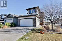 Priced below assessed value! Welcome to 128 Cabot Landing West. This Galko built beauty was a former showhome, so you know that all of the bells and whistles have been included, and then some! This stunning 2 story home has 1777 sq ft of space, has a bright open concept main floor, with a spacious kitchen, walk thru pantry, living room with fireplace, and a conveniently located 2 piece bath for your guests. Up the stairs you will find a bonus room with ample space and an abundance of natural light. A few more steps up to the primary suite with walk in closet and ensuite bath along with 2 more bedrooms and a 4 piece bath. The basement has a 4th bedroom, family room and another 4 piece bath. Step through your patio doors off the living room and your back yard oasis awaits. The oversized rear deck has a gas outlet for your BBQ, and leads down to a paving stone patio, with fully fenced yard that adds security for your kids and pets. The underground sprinklers are installed front and back, and the double attached garage is heated for even more comfort. Close to parks and playgrounds, and 2 future elementary schools, its move in ready, and the large corner lot affords additional parking. The recently installed solar panels are the cherry on top of this already perfect property! Come have a look and start your new chapter here. (id:27)