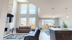 Welcome to this charming, Almost New Two-Storey home with 3 Bedrooms, 2.5 Bathrooms, Bonus Room, AND Office, Double attached garage, and a Walk-up basement with Separate Entrance located in a very desirable, family oriented neighborhood in southside community, and walking distance to elementary school and quick access to major shopping centers! As you walk up to the front entrance, you’ll be amazed by a spacious and covered veranda which leads to a very welcoming foyer. Enjoy the open floor plan with 9’ ceiling height throughout Main floor and living room with ceiling Open-to-Below with a total livable space of 3295 Sq.Ft. The Beautiful Modern style Kitchen is The Heart Of The Home complete with large quartz island, elegant Cabinets, customized hood fan, customized refrigerator doors to blend in with other cabinets, extra built-in countertop in front of pantry, Gas cook top stove, and all Stainless Steel Appliances. The Open-to-below 18’ concept along with big windows looking on to the backyard let lots of natural light come in throughout the day. This immaculate living room has a customized wall decorated with stone around fireplace throughout from main floor all the way to the top of the ceiling. This gives a unique view from hallway upstairs and even when looking down to see the living area on main floor. There is a half bath and an Office on the main floor along with built-in shelf space for closet which can be used as work space or a play room for kids. Going up the stairs, there is a spacious Bonus room which is a great spot for hanging out with friends, movie nights, or just to read a book with natural light from window. In addition, upper Floor consists of 2 big bedrooms, 3-piece bath, and a massive Master Bedroom with a 5-piece en-suite that is fully tiled, has a fancy Bath-tub, Walk-in Shower, extra vanity, and a Walk-in closet. Going downstairs to the enormous basement with a Roughed-in bathroom, laundry set up, there is a full future potential of building a 2 bedroom+family room Legal suite with a Separate Entrance which walks up to grade on to a Large Fenced Backyard with a back alley. Built in 2021, this home is fully equipped with Central AC, low-maintenance front yard, and fully-fenced Backyard ideal for Kids and Pets. Home in Pristine Condition: owners only lived here for few months since they bought it brand new, no pets, never smoked. This home is still under New Home Warranty. To checkout this beauty, Contact your favorite REALTOR® today!