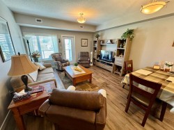 Immaculate 3rd floor condo in an excellent neighbourhood: Fairmont Landing! This very well kept home in an Adult only condo features 2 Full bedrooms with the primary featuring a walk thorough closet and ensuite! The main living area is bright and spacious with room for dining. The kitchen has lot's of cupboard and prep space, and an eat up bar for extra seating. The laundry room has space for a full size washer and dryer as well as some storage. A huge bonus in this condo is Central Air Conditioning! The Grand in Fairmont Landing is equipped with an elevator, gym, common area for visiting and also heated underground parking and dedicated storage! Situated on the top floor and sheltered from the wind, this is an excellent place to call home.