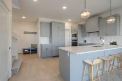 Welcome to the "Lanark II" by Stranville Living, located in the desirable Lethbridge community of Southbrook. This new home is situated merely a few dozen meters from Dr. Robert Plaxton K-5 public elementary school, whose property includes a new playground, soccer pitch, baseball diamond, and a basketball court. Southbrook is conveniently located minutes away from big box shopping, various restaurants, and the VisitLethbridge.com arena and event center. This two storey home is well laid out and boasts a main floor rivaled by few homes of this size. It incudes a beautifully appointed kitchen with Adora Cabinets, fully tiled backsplash, and quartz countertops at the base cabinets and the huge peninsula. Stranville Living's top tier appliance package includes a seamlessly integrated paneled Fisher & Paykel fridge, paneled dishwasher, induction cooktop, built-in hood fan, and a stainless steel wall oven and microwave combo unit. All in all, this is a clean and tight family home backing onto a new elementary school in one of the nicest neighborhoods in south Lethbridge. Tasteful finishes and quality workmanship make this an excellent investment for a buyer looking to start or continue the path to building equity through home ownership. High efficient mechanical equipment, Low E windows, and spray foam in the rim joists help keep your heating ad cooling costs in check. Very cool house on a terrific street in south Lethbridge! Photos contain virtual staging. There's nothing like NEW!