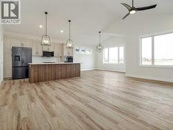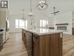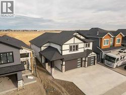 Discover exceptional living in this brand-new, fully finished five-bedroom, three-bathroom executive residence in the sought-after community of Southgate built by the amazing Grizzly Ridge. Offering a rare TRIPLE CAR ATTACHED GARAGE this home provides unparalleled space for vehicles, recreation, hobbies, or the ultimate private retreat—whether a workshop, collector’s showcase, or future golf simulator lounge. The main level spans an impressive 1,398 sq. ft., thoughtfully designed for both refined entertaining and comfortable daily living. A soaring vaulted ceiling, expansive windows, and a gorgeous gas fireplace with custom built-in shelving create a bright yet inviting great room atmosphere. The spacious eat-in kitchen and dining area seamlessly connect to the future rear deck, ideal for effortless indoor-outdoor gatherings. There is also a versatile flex room offers the perfect setting for a private office, library, or playroom, while two generous bedrooms and a beautifully appointed four-piece bath complete the level. Privately positioned on the upper floor, the primary suite is a true retreat boasting an impressive 717.37 sq. ft., featuring a spa-inspired ensuite with tiled glass shower, freestanding soaker tub, double vanity, and walk-in closet, all elevated by elegant tray-ceiling detailing and designer lighting. The fully developed lower level (1213.78 sq. ft.) extends the home’s lifestyle appeal with a spacious recreation area, wet bar, and a second fireplace with custom built-ins—perfect for entertaining or relaxed family evenings. Two additional bedrooms and a luxurious five-piece bathroom provide ideal accommodation for guests, teens, or multigenerational living. With no additional new construction for Grizzly Ridge anticipated until later this year, this move-in-ready home represents a limited and highly desirable opportunity to secure brand-new luxury in one of the area’s most coveted neighborhoods. (id:27)
