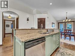 This stunning custom, Roth-built hillside bungalow offers 2,955 sq. ft. of beautifully updated living space with 5 bedrooms—2 on the upper level and 3 on the lower. The main floor showcases a spacious living room with new luxury vinyl plank flooring and access to a massive covered deck featuring breathtaking east-facing coulee and sunrise views. The recently renovated chef’s kitchen is a showstopper with two-toned cabinetry, eye-catching tile backsplash, granite countertops, an oversized island with seating, and high-end appliances including a wall oven, built-in microwave, smart fridge, and ceramic cooktop. Hardwood flooring flows through the kitchen and dining room, which comfortably accommodates large gatherings and offers access to a second covered deck with gas line overlooking the low-maintenance backyard. The primary bedroom is a serene retreat with luxury vinyl plank flooring, a large walk-in closet, and a spa-like 3-piece ensuite with walk-in shower, while a generous second bedroom and 4-piece main bath complete the upper level. A large mudroom connects directly to the heated, finished double attached garage for ultimate convenience. The lower level features the main entrance opening to an expansive family room with high-end vinyl flooring and a gas fireplace with updated surround, three spacious bedrooms with built-in closet shelving (one currently used as a den with opaque glass French doors), a 5-piece bathroom with double sinks, and a functional laundry room with sink and cold storage room adjacent. Numerous updates include shingles, furnace, flooring, appliances, and window coverings. There are also solid maple doors throughout this entire home! Outside, enjoy a grassy front yard and a maintenance-free concrete backyard with a beautiful gazebo and ample parking for an RV or boat—this exceptional home is truly move-in ready and ideal as your forever home. (id:27)