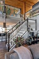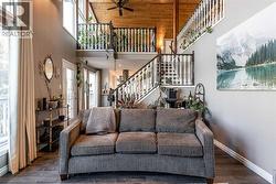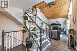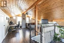 1168 16 Street NE is a truly special home, offering a rare blend of character, thoughtful updates, and an exceptional location with views of the river valley — all tucked away on a quiet, desirable street. The home’s unique design welcomes you through the front door into the lower level, where a spacious and inviting rec room/living area awaits. Functional details like built-in cabinetry, a Murphy bed, and charming wallpaper make this level incredibly versatile. Heading upstairs, the main level is nothing short of breathtaking. Vaulted cedar ceilings, expansive windows, and open sightlines flood the space with natural light and create an airy, uplifting feel. The living room is anchored by a brand new wood-burning fireplace complete with updated hearth, mantel, tile, and insert. The kitchen is elegant and seamlessly connects to the dining area, offering direct access to the large wrap-around deck where you can enjoy peaceful views and morning coffee overlooking the yard and river valley beyond. This level also features a spacious primary suite, complete with double closets and a private 3 pc ensuite. Two additional bedrooms, a beautifully updated 4 pc main bathroom, and a convenient laundry room complete this floor. Above it all, the third floor loft is a standout feature and a truly inspiring space. Bathed in natural light, it offers the perfect spot to relax by the windows and take in those gorgeous views! Whether used as a library, home office, family room, or creative retreat, the loft also includes smart built-in storage along both sides, making it just as functional as it is charming. Set on an impressive 11,800 sqft lot, the outdoor space is an absolute oasis. While winter has it resting, it’s easy to imagine how stunning and serene this yard becomes in the warmer months: mature landscaping with UGS, a peaceful pond with waterfall, relaxing hot tub, and a charming shed with electrical — all creating a private retreat rarely found in the city. Additional highl ights include solar panels, adding efficiency and long-term value, and a home layout that feels both open and intimate. Homes with this much character, space, and setting rarely come available. This is a property that must be experienced to truly appreciate its warmth, charm, and timeless design. (id:27)