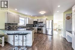 38 Cook Court SE | Walk-Out Bungalow with Sweeping Views. Enjoy breathtaking, unobstructed views of Medalta, Strathcona, and clear across Medicine Hat from this beautifully positioned 1,635 sq. ft. walk-out bungalow, tucked away on a quiet court and filled with natural light throughout.This well-designed home offers 5 bedrooms and 3 bathrooms, making it ideal for families or those who love extra space. The main floor welcomes you with a large front sunken living room, anchored by a massive picture window filling the space with natural light. A generous dining room flows seamlessly into the updated kitchen, featuring painted grey-toned cabinetry, granite countertops, under-cabinet lighting, and an eat-in area with access to the enclosed sunroom/deck—the perfect spot to relax and take in the scenery year-round.The primary retreat is truly a standout, offering plenty of space, a 4-piece ensuite, and your very own sauna for spa-like relaxation at home. Two additional bedrooms (one currently used as a main floor laundry) and a full 4-piece bathroom complete the main level.Downstairs, the fully finished walk-out basement expands your living space with a huge rec room, two more bedrooms, another 4-piece bathroom, and a large unfinished area with laundry hookups—ideal for storage, a workshop, or future development.Step outside to a fully fenced backyard designed to impress, featuring stunning views, four garden areas, and a gas line to the patio—perfect for summer entertaining. Additional highlights include two furnaces, a water softener, a brand-new hot water tank and RV Access/Parking!A rare combination of space, views, and location—38 Cook Court SE is a home you won’t want to miss. (id:27)