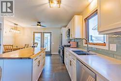 Welcome to this beautifully updated 3+2 bedroom, 4-level split in the heart of Ross Glen, offering space, style, and a layout that truly works for family living. Step inside and head up to the bright, open main level where natural light pours into the inviting living room, highlighted by a gas fireplace with a striking white stone feature. The space flows seamlessly into the fully renovated kitchen, showcasing timeless white cabinetry, quartz countertops, and a show-stopping island topped with a live-edge slab counter. The cozy dining area opens through garden doors to a two-tiered deck — perfect for BBQs, entertaining, or unwinding on warm summer evenings. Upstairs, you’ll find a spacious primary suite complete with walk-in closet and private ensuite, two additional bedrooms, and a newly renovated 4 pc main bathroom. Just a few steps down from the main floor is a functional lower level featuring two additional bedrooms (both with egress windows), a 4 pc bathroom, and a dedicated laundry room. The lower basement level offers a versatile recreation room, perfect as a playroom, games room, or media space, along with a large utility room providing excellent storage. Outside, the landscaped backyard features both covered and open deck areas, underground sprinklers, and plenty of room to enjoy. Parking is abundant with a double attached garage, a spacious driveway, and extended side parking beside the garage. This is a thoughtfully updated home in a family-friendly neighbourhood close to schools, parks, walking paths, restaurants, and shopping. (id:27)