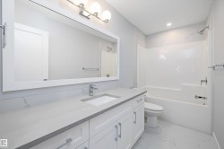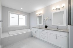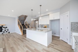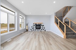 Welcome to Westwinds in Morinville. Brand new 2-storey walkout offers a thoughtfully designed living space, BACKING DIRECTLY ONTO THE POND for unbeatable views. Step inside to a bright front foyer w/built-in bench & storage, leading to an open-concept main floor that’s both functional & elegant. The kitchen is a showstopper w/quartz counters, sleek cabinetry, central island, a walk-in pantry-all overlooking the spacious dining area & cozy living room w/fireplace. Step out onto your deck to enjoy peaceful pond views year-round. Upstairs, you’ll find three bedrooms, a full bathroom, & a versatile bonus room-perfect for a playroom/office/media space. The primary suite is designed for relaxation, featuring a spa-inspired 5-piece ensuite w/double sinks, soaker tub, & walk-in shower, along w/custom walk-in closet. A convenient upper-level laundry room completes the floor. The unfinished walkout offers endless possibilities with access to a large patio to unwind & relax. Some photos AI Staged