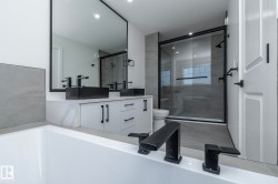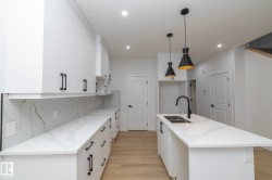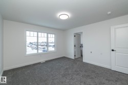 Welcome to this new custom built 2 storey home with all the builder upgrades & more. This modern floor plan will impress, from the large spacious kitchen featuring quartz counter tops, modern custom cabinets, expanded kitchen island, pantry & much more, to the cozy living room w fireplace feature wall & large windows. The oversized dining room will accommodate the largest of gatherings "perfect for entertaining". A private den with built-in cabinets and 2 piece bathroom completes the main floor. Upstairs offers 3 good sized bedrooms including a large primary bedroom with full en-suite & walk-in closet with custom built in shelving. Convenient Upper floor laundry room, 2 additional bedrooms and 4 piece bath completes the upper level. Side entry leading to basement offers potential for a future suite and double oversized concrete parking pad in back are just a few of the added features of his home. Modern living with all the comfort features you would want. IMMEDIATE POSSESSION AVAILABLE,