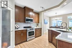 ~LAKE ACCESS ~ STEPS TO GOLF COURSE~ TRIPLE HEATED GARAGE ~ 6 BEDOOMS ~ 4 BATHS ~ ALMOST 4000 SQ FT OF LIVING SPACE~ Check out this absolutely stunning home nestled on one of the quietest roads in Crystal Green. Backing onto the prestigious Air-Ranch homes gives this street that extra feel of luxury and privacy. This home provides the space you need for large families to function together. Step inside the large entranceway and notice the beautifully maintained hardwood floors. The front office/den can be easily converted to a formal dining space or the flex space you need. Step through to the open concept living space with a charming 3 way gas fireplace, a stunning kitchen, huge dining, and cozy living room. This open floorplan is where all the memories will be made. Large windows invite your eye to enjoy the outside greenery. Enjoy cooking meals in this chefs kitchen with recent updates of new quartz counters and backsplash. Plenty of cupboards, workspace, stainless steel appliances, gas stove, corner pantry , and massive sit up island are just a few of the features this kitchen offers. Enjoy watching the kids and pets play in the yard from the kitchen. The upper level has new plush carpets and offer a second living space for your family. The huge bonus room is loaded with natural light and provides a good separation between the primary bedroom and the kids/guest rooms. You will love this massive primary suite!! The walk-in closet is large enough to host all your clothes plus dressers if needed. The ensuite gives a space to relax after a long day at work. 3 more large sized rooms plus another 5 piece bathroom complete this bright and sunny upper level. The fully finished lower level provides a 3rd living space plus 2 more large bedrooms and another full bathroom. If you love outdoor space, this home is for you!! The tranquil oasis of a back yard truly comes to life every summer providing privacy, and pure bliss. Relax on the large deck space and listen to the le aves on the mature trees blowing in the breeze. There are so many spaces on this property to obtain the lifestyle you desire. Enjoy long walks on the extensive path system Okotoks has to offer. Close to parks and playgrounds , in a convenient north end location that is perfect for city commuters. The oversized triple heated garage has epoxy floors, a man door to outside, a workbench area(or extra toy parking) and plenty of space for storage. Air conditioned on all levels of the home! There is truly something for every member of the family to find pleasure in this remarkable home. Upgrades over the last few years include new concrete pathway to back yard, hardwood floors redone, new counter tops and backsplash in kitchen, new carpets, paint, new back door and back windows, epoxy floors in garage... and more. Enjoy 4 season entertainment at Crystal Shores lake, offering beaches, swimming, fishing(summer and winter) and skating. This is a true family home ready for its next family to enjoy. (id:27)
