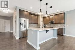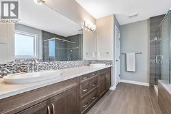 Welcome to 94 Cimarron Springs Circle! Step into the spacious foyer, complete with custom bench seating, and you are immediately welcomed by a thoughtfully designed open-concept layout that truly feels like home. The seamless flow between the modern kitchen, dedicated office space, dining area, and great room creates an ideal space for everyday living, working and entertaining. Rich hardwood floors set a warm tone, complemented by an elegant fireplace with built-in custom cabinetry, modern light fixtures and the stunning sparkle of quartz countertops throughout the kitchen. Completing the main floor is a powder room, mudroom and walk-through pantry! Upstairs you’ll find a well-designed layout, featuring two generous bedrooms each with their own walk-in closet, and positioned away from neighbours for added privacy. For the Disney lover in all of us, a hand-drawn, custom painted mural is the highlight of one of the bedrooms as well! An enormous bonus room, with vaulted ceiling, provides endless possibilities such as a theatre room, play area, or library. The laundry facilities and main bathroom can also be found here as well. The master bedroom is a retreat, complete with a spacious walk-in closet, a luxurious ensuite with dual sinks, a relaxing soaker tub, and a glass-enclosed standalone shower. The home also offers an unfinished basement that is ready for your personal touch for future development. With a fully fenced, west facing backyard, you’ll enjoy beautiful afternoon and evening sunlight—perfect for relaxing or entertaining outdoors. Additional highlights include an oversized double garage and air conditioning for year-round comfort. This home is close to walking paths, parks, ponds, schools and convenient shopping and restaurants. This is a home you won’t want to miss—book your private showing today! (id:27)