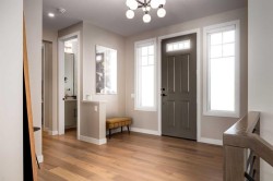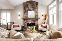 This stunning, newly built bungalow in the prestigious community of Cimarron Estates will be ready for possession in April 2026! Situated on a 17,000 sqft walkout lot with views to greenspace and no neighbour behind, this is truly a rare opportunity. As the last newly built home in Cimarron Estates, don’t miss your chance to secure this one-of-a-kind property. With nearly 3,000 sqft of developed living space, this fully finished home blends luxury and comfort. The main level spans 1,740 sqft, featuring an expansive open-concept living area with vaulted ceilings in the kitchen, dining room, and great room, creating an airy, inviting atmosphere. A wall of rear windows fills the space with natural light, while beautiful hardwood flooring flows throughout. At the heart of the home is a gourmet kitchen with a walk-in pantry, full-height cabinetry, a large island with a beverage cooler, and premium stainless-steel appliances, including a gas cooktop, range hood, wall oven, microwave, and French-door fridge. The kitchen seamlessly connects to the dining area with access to the full-width deck overlooking the backyard & greenspace, as well as the great room, highlighted by a striking floor-to-ceiling tiled fireplace. The primary retreat features a spa-inspired ensuite with dual sinks, a full-tile walk-in shower, a soaker tub, and a large walk-in closet with direct access to the laundry room for added convenience. Completing the main floor are a mudroom off the garage, a 2-piece powder room, and a versatile den/flex room. The fully finished walkout basement adds 1,153 sq. ft. of living space, including two generously sized bedrooms, a full bathroom with dual sinks, and a massive storage/mechanical room. A bright, open rec room with an electric fireplace and a dedicated games area framed by large windows makes the lower level both functional and inviting. From here, walk out to a spacious covered patio and the expansive yard. Other highlights include a side-drive triple-car garage, 8-foot interior doors, premium finishes, and a thoughtful layout designed for modern living. Don’t miss this opportunity to own the final newly built home in Cimarron Estates—a home that offers space, privacy, and luxury in one of Okotoks’ most sought-after communities. **Note: Photos are from a previous show home and may not be an exact representation of the property. Interior selections are at the end of the photos (Images 30-36).
