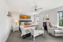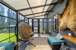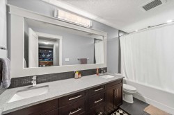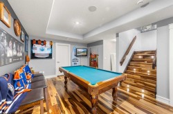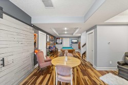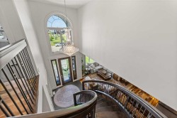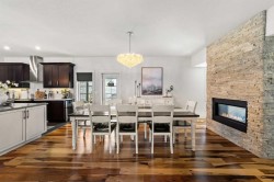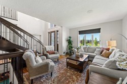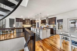 Welcome to this exceptional 5-bedroom luxury home, located on Harrison Green in the Olds Highlands. Situated on a generous lot with a beautiful central green space right out front, this property blends high-end finishes, thoughtful design, and an unbeatable location in one of Olds’ most desirable neighborhoods. From the moment you enter, you're greeted by a grand open staircase and elegant features throughout. The chef’s kitchen is the heart of the home—perfectly designed for entertaining and everyday living—with a large center island, full-size stove, wall oven and microwave, pot filler, wine fridge, and ample work space. There's also plenty of room for a large dining table, making it ideal for hosting family gatherings and dinner parties. Beside the dining area, a cozy, tucked-away family/TV room offers a perfect spot to unwind, separated by a double-sided fireplace that adds warmth and ambiance to both spaces. Enjoy total comfort in the 3-season east-facing enclosed patio room, perfect for morning coffee or evening relaxation. Step outside to a beautifully landscaped yard with a hot tub, rear shed with power, and a full irrigation system keeping the lawn green and lush. All five bedrooms feature walk-in closets, and the primary suite is a true retreat with a spa-inspired ensuite, including a freestanding tub and a double-sided fireplace shared with the bedroom—offering the perfect blend of comfort and luxury. The fully finished basement features in-floor heating, wet bar, a home theatre, and two large bedrooms—perfect for teenage children, guests, or visiting grandchildren needing space and privacy. Car lovers and hobbyists will appreciate the heated 4-car garage, complete with in-floor heat, a car hoist, air compressor with air lines throughout, and plenty of space for vehicles, tools, and toys. Additional highlights include a reverse osmosis water system, upgraded lighting, and premium finishes throughout. Don’t miss out on this incredible property that offers luxury, comfort, and room to grow in a prime location.