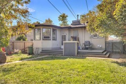 Attention first time home buyers and investors!! Here is a great opportunity to own a cute little bungalow on one of the prettiest streets in Ponoka. There have been some great updates including brand new roof, eavestrough, soffit and facia. The main level welcomes you into an adorable foyer that opens into a large living room with tons of natural light flowing through. The kitchen and extended dining area/breakfast nook are functional and look out into the large back yard with several large windows – so Natural Sunlight fills this charming home! The bathroom has been updated with a wonderful 6ft soaker tub and then there is a great sized primary bedroom – suitable for a KING sized bed with built-in closet and a second bedroom on the main floor – perfect for the kids or home office. The basement has been finished and is a great hangout spot for the teenagers or family and friends. There is a large family room, a large bedroom and a 3-piece bath. The large utility room/laundry room balance out the basement space and give you a lot of options for storage. Outside you get the benefit of being in an older and mature part of town…..HUGE YARD!! Tons of space for you to create the backyard of your dreams, or keep it simple and low maintenance. There is a single detached garage in the back and an additional off-street rear parking space. There is power ready for your future hot-tub, and a fully fenced yard to keep the kids and pets contained. This home is super solid and a great starter!!