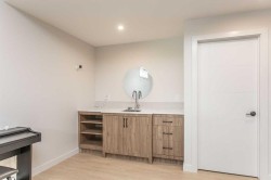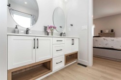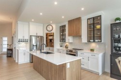Explore this exquisite and spacious executive bungalow, featuring a three-car garage crafted by True-Line Homes. This residence showcases a unique layout that the builder has designed for the first time. Situated in the picturesque Evergreen neighborhood, this beautiful home presents an expansive open floor plan with soaring 11-foot ceilings and an abundance of south-facing windows, flooding the interior with natural light.As you step through the front door into the generous foyer, you'll immediately notice its convenient dual access with the entrance to the garage. This intelligently designed space includes a large foyer, a spacious closet, and custom shelving.The modern chef's kitchen is a culinary delight, boasting high-end appliances, ample cabinet and countertop space, and an impressive 8.5-foot island. Luxurious finishes include Quartz countertops, a Franke peak undermount granite double bowl sink, and a walk-in pantry with custom shelving for abundant storage. Attention to detail shines through with a custom wood range hood stained to match the island and stylish glass cabinet shelving.On the main floor, there's a versatile den currently utilized as an office, which could easily serve as a fourth bedroom. The spacious primary suite features a five-piece ensuite and a generously sized custom walk-in closet, expertly designed by Canadian Closet. An additional highlight is the expansive laundry room equipped with custom cabinetry and countertops, along with a pass-through window from the walk-in closet. This laundry space houses the LG 6.0 cu. ft. mega capacity Wi-Fi enabled front-load washer with the LG Sidekick mini washer in the pedestal along with a matching 9.0 cu. ft. dryer. Lastly, a two-piece powder room completes the main level.Descend the extra-wide stairs to the cozy family room, equipped with in-floor heating, ideal for movie nights or family game sessions. This level also includes two spacious bedrooms and a full four-piece bathroom, all enjoying the comfort of in-floor heating. The large storage area features durable painted floors, offering potential for an additional bedroom.This home boasts numerous upgrades, including a low-maintenance front verandah and a 10' x 18' back deck, central air conditioning, a water softener system, SunStop Low E argon-filled windows, and a fully finished heated triple garage with an epoxy-coated floor and two dry sumps. Custom Hunter Douglas blinds are fitted throughout, with motorized options in the living room, office, and primary bedroom.The professionally landscaped front and back yards feature stone elements and raised flower beds, enhancing the home's curb appeal. The Evergreen neighborhood offers extensive multi-use trails connecting to Red Deer’s extensive trail system, as well as two ponds with unique bridges and large playground and park facilities. Come and discover the elegance and comfort this remarkable property has to offer!